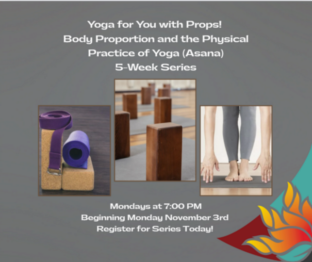 This special 5 Class Yoga Series is open to anyone interested in learning how to incorporate yoga props (blocks, straps, bolsters) in hatha yoga. Enjoy the experience of modifying yoga poses to suit individual body proportions. Yoga props encourage proper alignment and safety. Inspired by Iyengar yoga, this approach often makes the practice more accessible and effective for people of all body types, regardless of limb length or torso size.